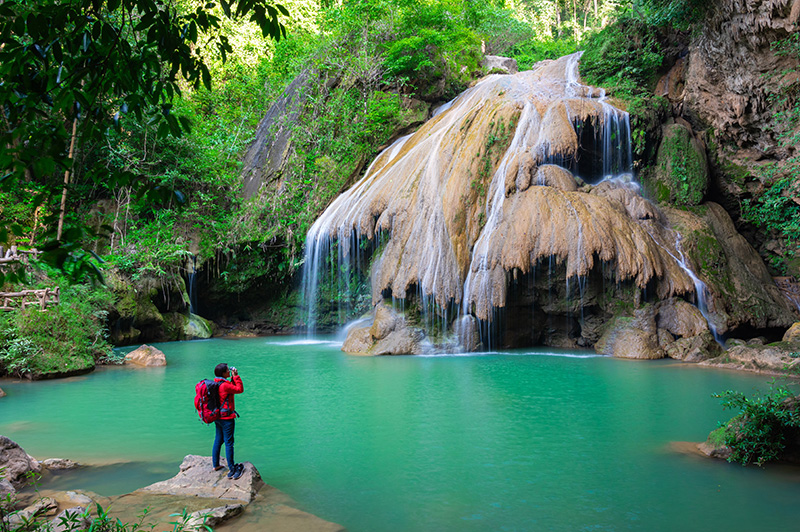 โดดเด่นด้วยน้ำตกหินปูนขนาดใหญ่ สายน้ำสีเขียวมรกตไล่เฉดไปจนถึงฟ้าใส ลดหลั่นเป็นชั้นอย่างสวยงาม ท่ามกลางธรรมชาติร่มรื่นน่าเช็กอิน